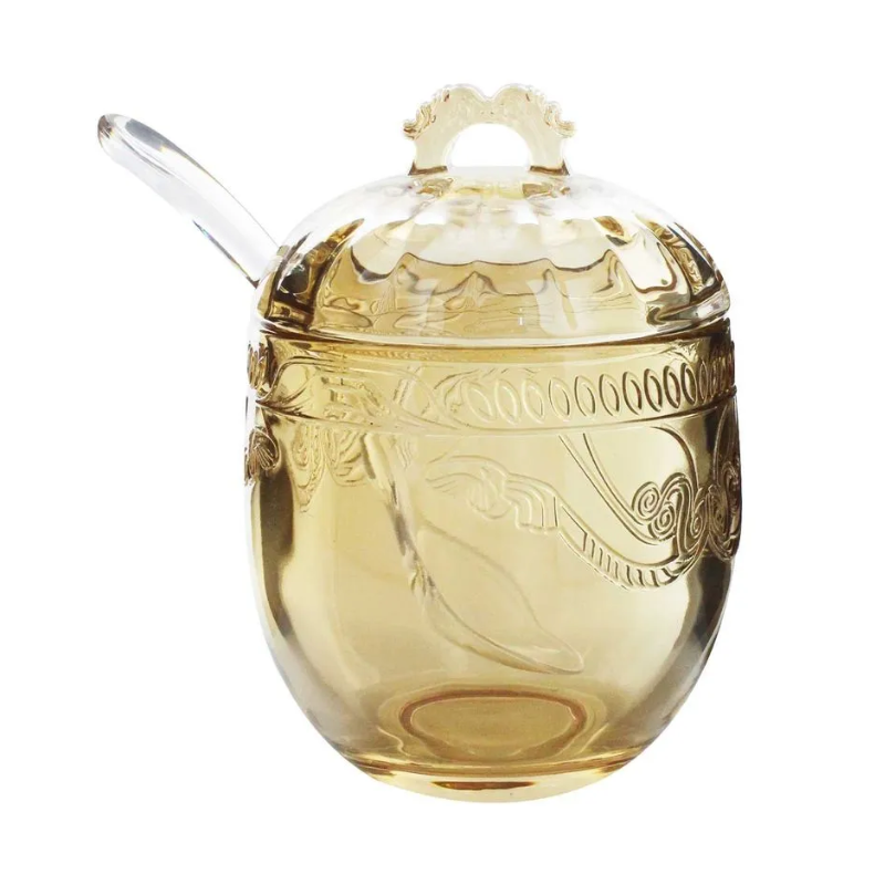 Adicione sofisticação ao seu cantinho do café com o Açucareiro Imperial da Lyor! Feito em vidro na elegante cor âmbar, ele possui design clássico com detalhes em relevo e acompanha uma prática colher, unindo charme e funcionalidade para servir açúcar, adoçante, mel ou geleias com muito estilo.