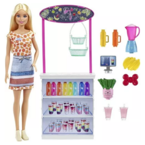 – **Boneca Barbie incluída:** A Barbie está vestida com um lindo avental de florista, pronta para atender seus clientes e cuidar de sua loja de flores.