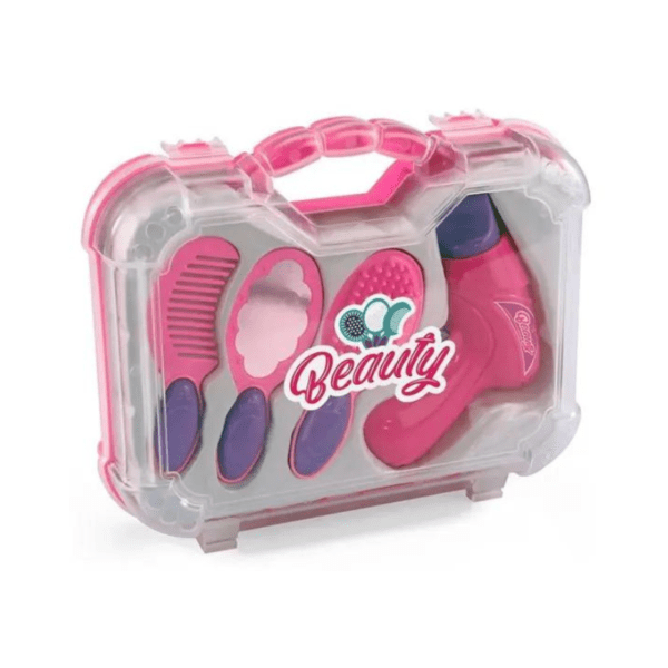Com a maleta de Beleza de brinquedo da Paki Toys, sua filha vai poder brincar de se arrumar com suas amiguinhas. O brinquedo vem com acessórios de beleza como: Espelho, Secador. Escova e Pente, além de uma maletinha para guardar tudo.