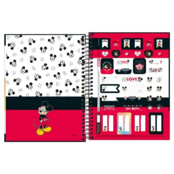 - Capa dura temática: Design exclusivo com o Mickey, trazendo um visual moderno e divertido.