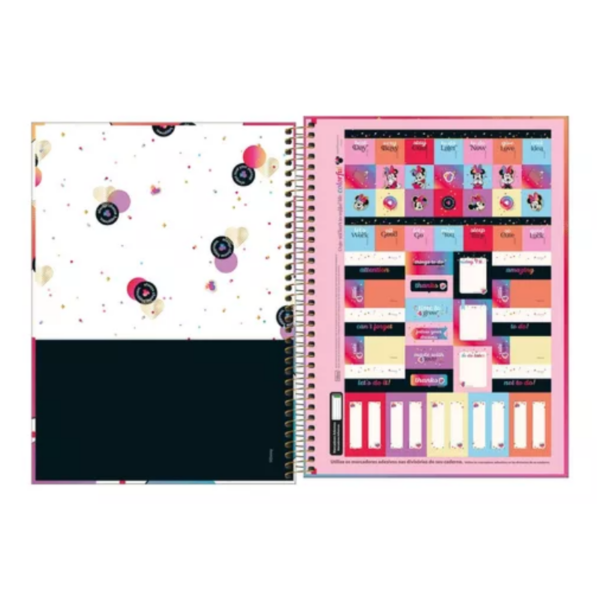 - Capa dura temática: Estampa exclusiva da Minnie, com design moderno e delicado.
