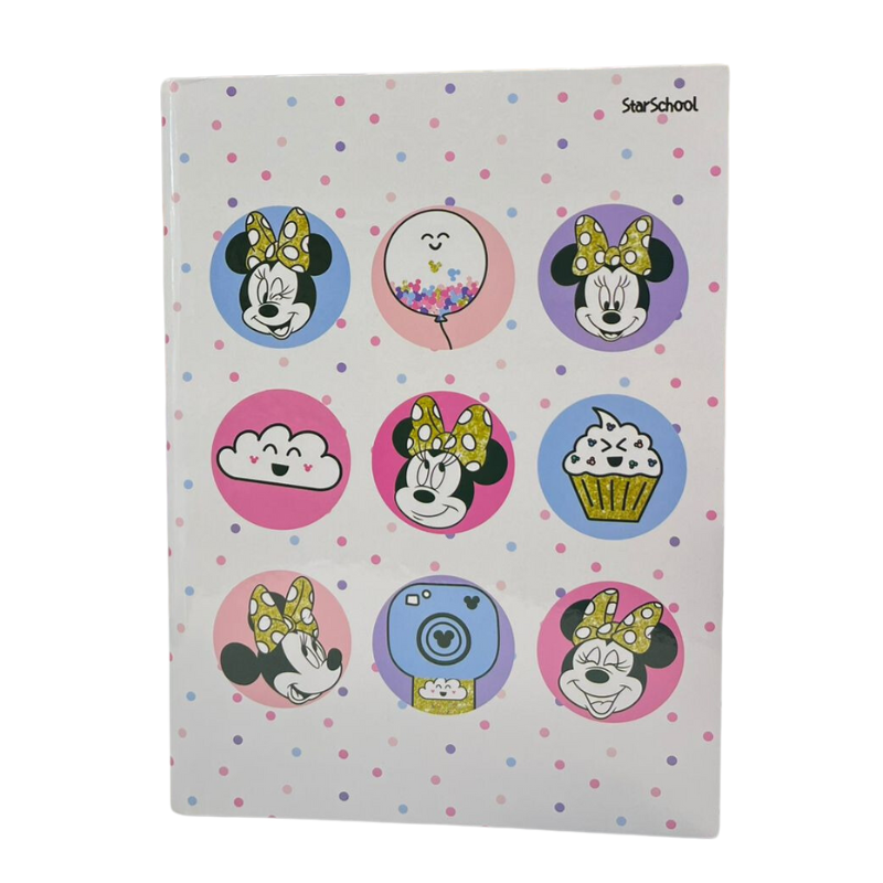 - Capa dura temática: Estampa exclusiva da Minnie, com detalhes vibrantes e cheios de personalidade.