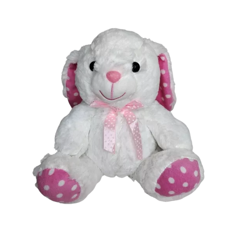 Coelho de Pelúcia com Orelhas Rosas e Bolinhas Brancas – 25cm | Fizzy