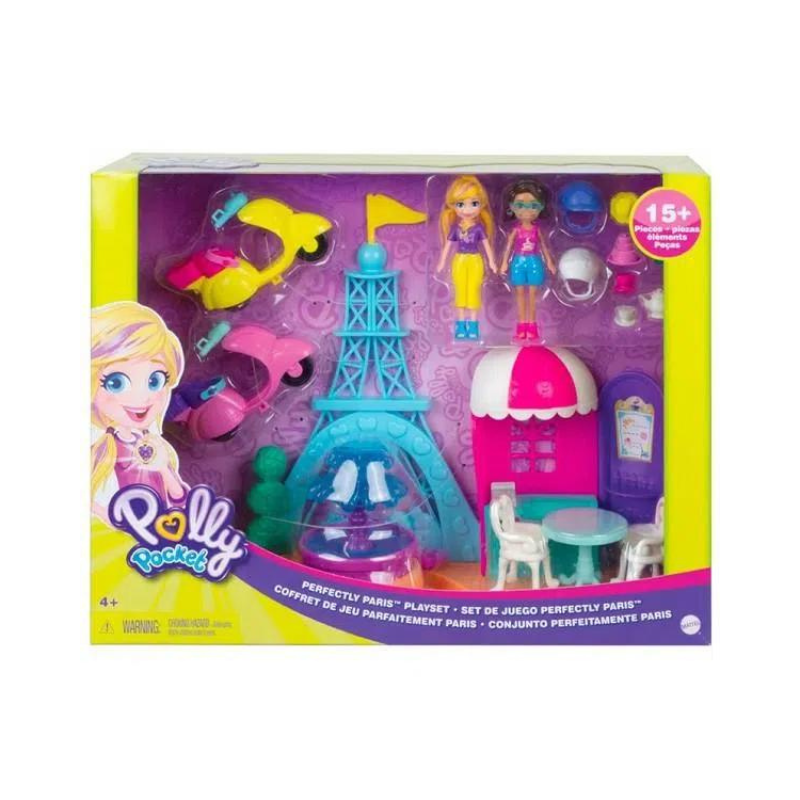 Prepare-se para uma bela viagem a Paris com o conjunto Polly Pocket Perfeitamente Paris! Este conjunto encantador inclui as bonecas Polly e Shani de 7,5 cm e cada boneca vem com uma lambreta e capacete para viajar pela cidade e ver os pontos turísticos! As meninas podem visitar a Torre Eiffel, passear pela bela fonte e, em seguida, parar no café e tomar uma xícara de chá, um pedaço de bolo e muito mais! Muita diversão nesta bela cidade!