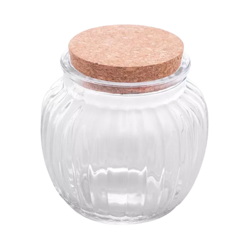 Porta Mantimento Redondo de Vidro com Tampa de Cortiça 650ml – Lyor