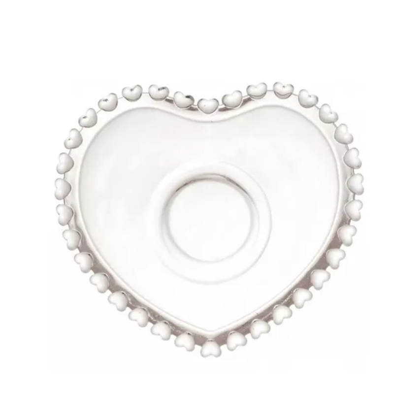 Xícara de Cristal 80ml com Pires e Bordas em Formato de Corações | Lyor